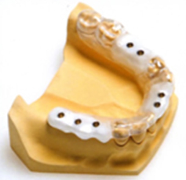 インプラント手術の際に、ドリルで穴を開ける際のガイドとなるものです。このガイドをCTスキャナのデータを元に正確に作成することにより、手術もまた安全かつスムーズに進行いたします。