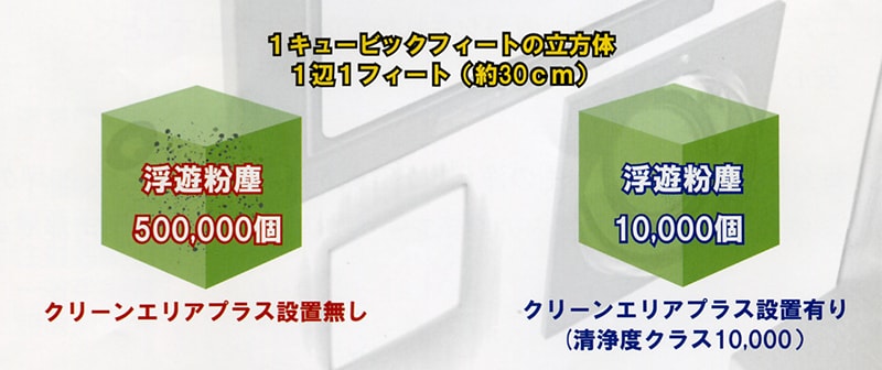 当院では『清浄度クラス10,000』という、一般的手術室としては極めて清浄なレベルを確保可能な空気清浄装置を導入することにしました。これはアメリカ航空宇宙局(NASA)の規格で、約30cm四方の立体中に、0.5ミクロン以上の浮遊粉塵が10,000個以下の場合を言います。