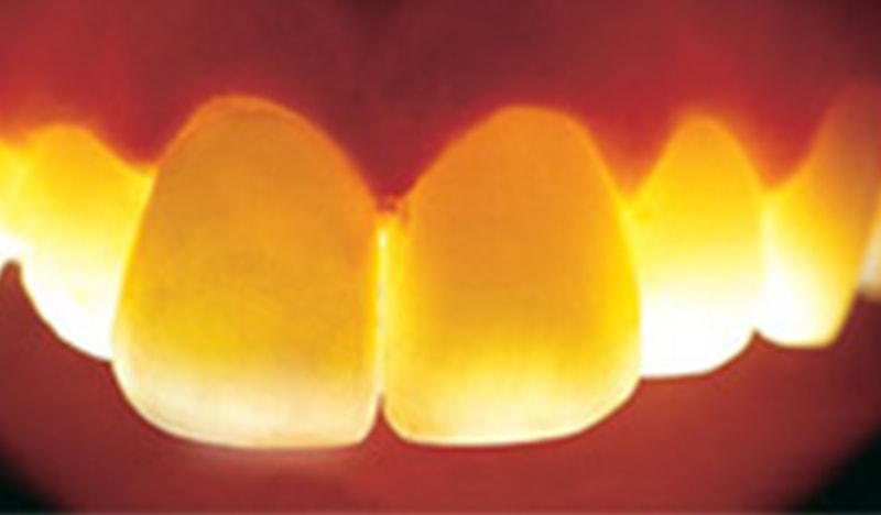 ジルコニア(ZrO2)のため、天然歯のように自然です。ジルコニアは耐熱性セラミックで、医療用としては10年以上前から人工股関節の骨頭などに応用され、優れた生体親和性と高い強度を持っています。金属を用いないため、見た目も美しく透明感にも優れています。